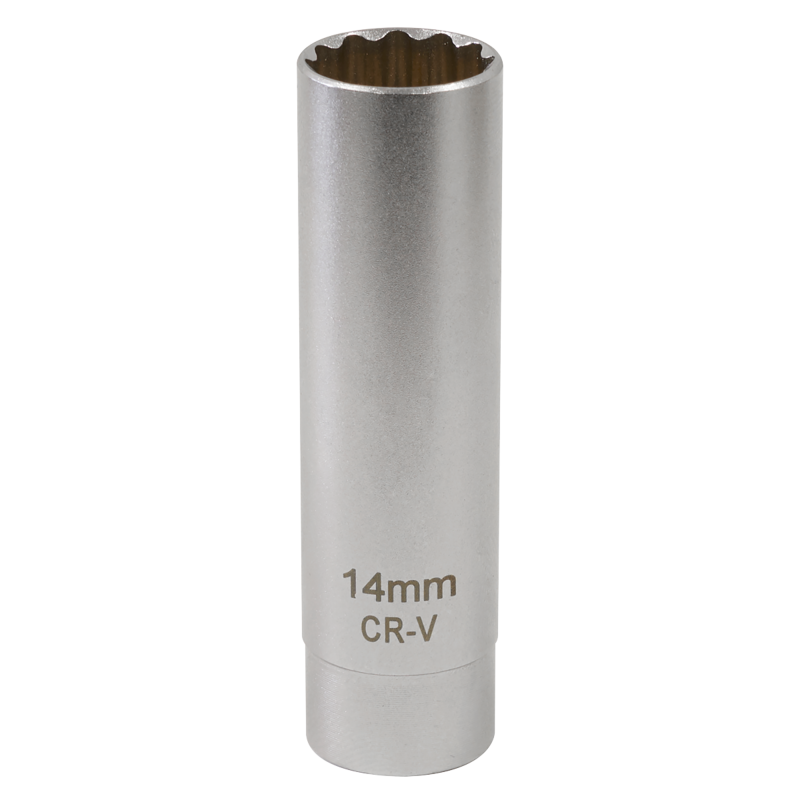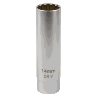 Designed for use where plug clearance is tight.Standard depth, thin wall, 12-point 3/8Sq drive 14mm socket with magnetic insert to retain spark plug.