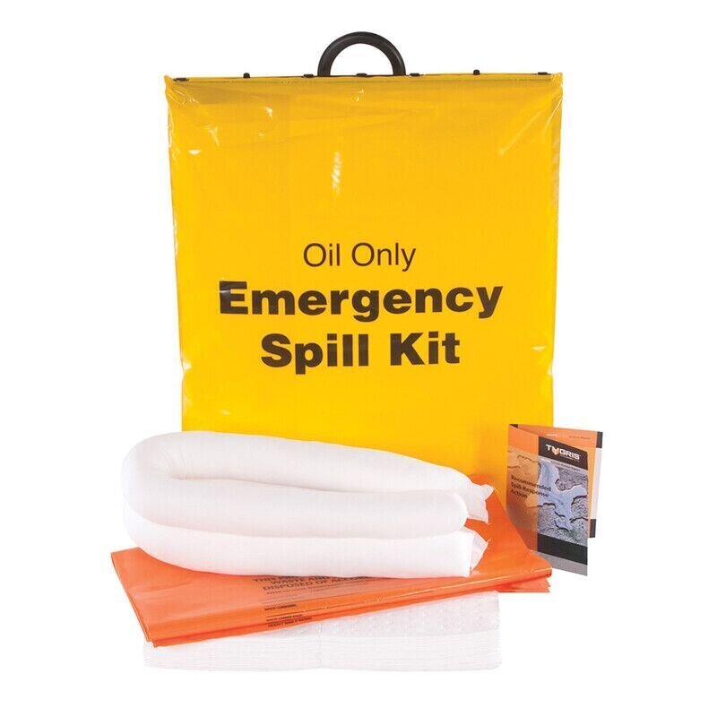 TYGRIS Small Oil Only spill kit in a snap-close plastic carry bag. This spill kit is a handy on-the-go size providing essential absorbents required for small spills that may potentially occur anywhere. It is easily carried around in its snap-close bag.