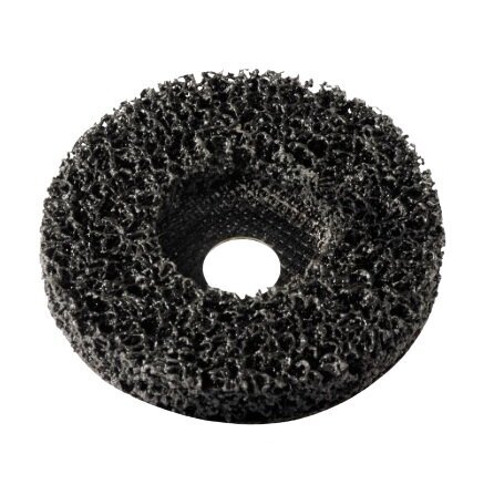 This STRIP-IT material is applied on a stiff fibre backing, thus allowing it to be used on angle grinders.