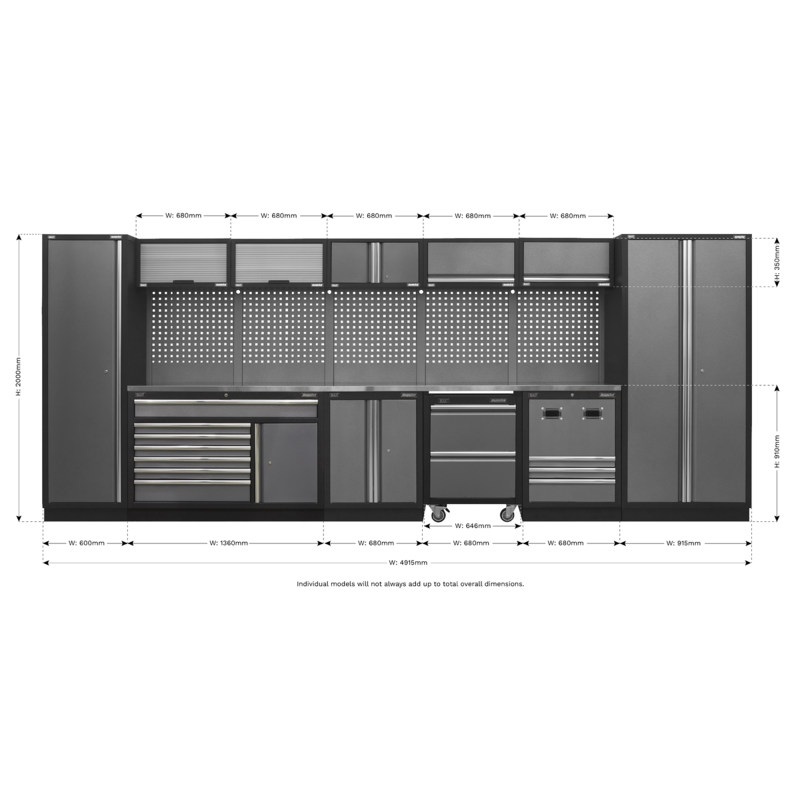 Sealey APMSSTACK16SS Superline PRO 4.9m Storage System - Stainless Steel Worktop