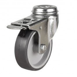Synthetic non-marking grey rubber on plastic centre with pressed steel bracket.