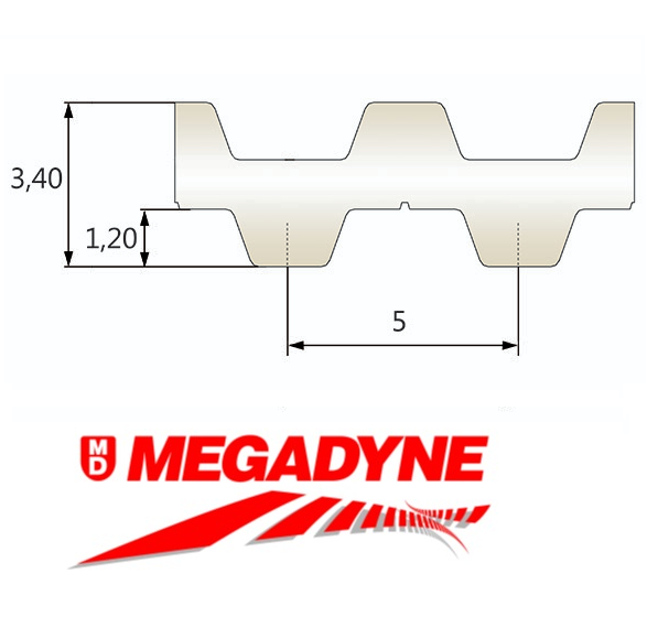 Megapower 2 is a new generation of thermoset polyurethane timing belts. Its unique new molding process, combined with a high performance compound, ensures superior dynamic performance, more transmittable power and excellent dimensional stability.