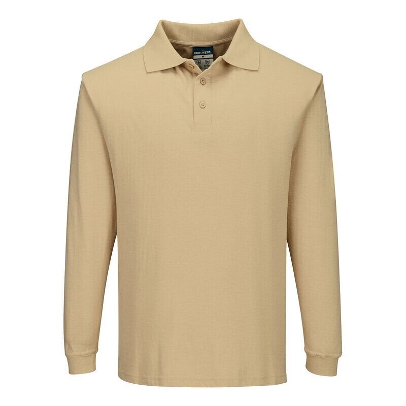 Portwest Modaflame Knit FR Long Sleeve Polo Shirt (Tan / 5XL / Regular Fit)