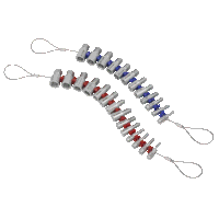 Red beads between gauges to indicate the Imperial sizes and Blue to indicate Metric.