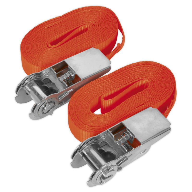 Sealey TD08045E Self-Securing Ratchet Straps 25mm x 4.5m 800kg Breaking Strength - Pair