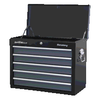 Features drop-down carry handles, smooth ball-bearing drawer slides, cylinder lock and steel bars that can be locked into place to keep drawers shut for additional security.Built-in storage for locking bars when toolbox is in use.
