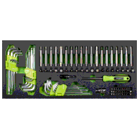 Bits; TRX-Star* - T20, T25, T30, T40, T45, T50, T55 (1 each of 30 and 75mm), Hex – 4, 5, 6, 7, 8, 10, 12mm (1 each of 30 and 75mm), Spline - M5, M6, M8, M10, M12 (1 each of 30 and 75mm), Adaptors; 1/2"Sq Drive x 10mm Hex, Hex Keys; 1.5, 2, 2.5, 3, 4, 5,