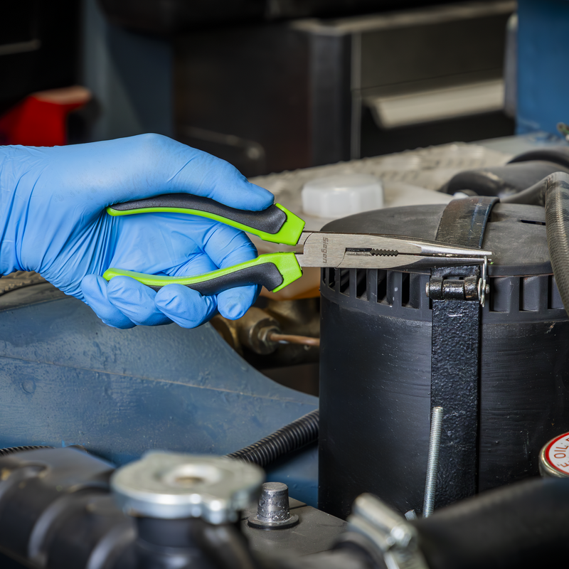 180mm Combination Pliers, 200mm Long Nose Pliers, 150mm Diagonal Side Cutters, 250mm Water Pump Pliers, 130mm Mini Combination Pliers, 125mm Mini Diagonal Cutters, Needle Nose Pliers; 275mm Straight, 275mm 90°Angle, 275mm 45° Angle