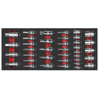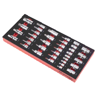 SEALEY PREMIER TOOL TRAYS - One of a comprehensive range of Premier Tool trays designed to fit the Sealey AP24 series and selected Superline PRO Topchests, Rollcabs Workstations.37PC SOCKET BIT SET - 1/4Sq Drive Socket Bits TRX-Star Female - E4, E5, E6, E7, E8, 3/8Sq Drive Socket Bits Hex - 4, 5, 6, 7, 8, 9, 10mm, TRX-Star - T10, T15, T20, T25, T27, T30, T40, TRX-Star Female - E10, E11, E12, E14, 1/2Sq Drive Socket Bits Hex - 12, 14, 17, 19mm, TRX-Star - T45, T50, T55, T60, T70, TRX-Star Female - E16, E18, E20, E22, E24.