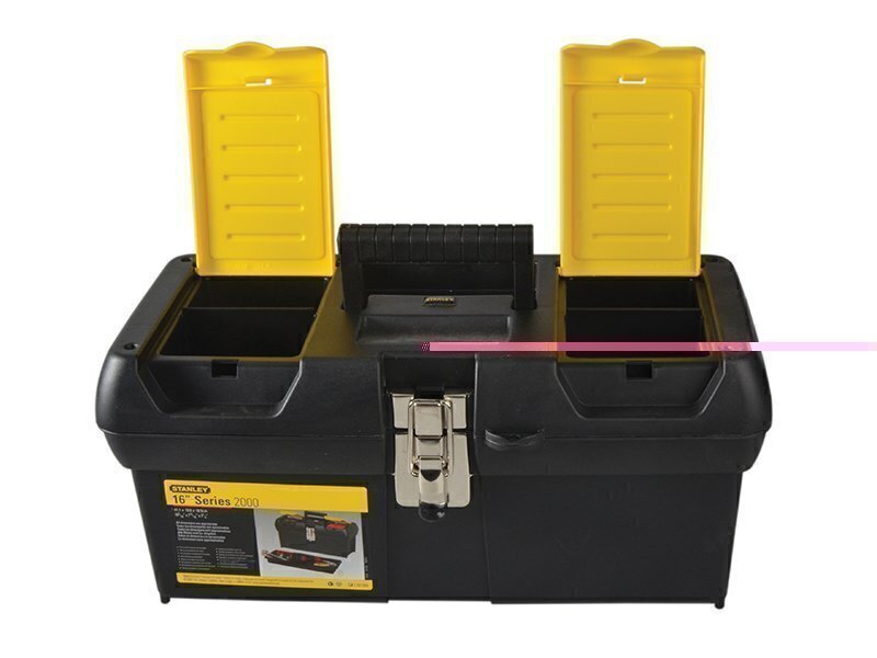 The Stanley Metal Latch Toolbox is made from tough durable plastic. It comfortably stores a large range of tools for easy transportation around the home or work site.