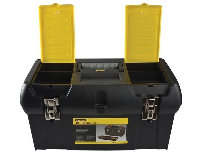 The Stanley Metal Latch Toolbox is made from tough durable plastic. It comfortably stores a large range of tools for easy transportation around the home or work site.