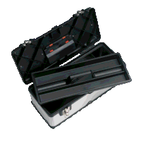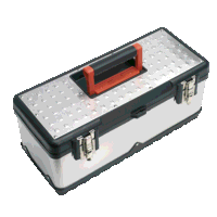 Heavy-duty stainless steel toolbox with integral composite tote tray.Soft grip carry handle for added comfort.