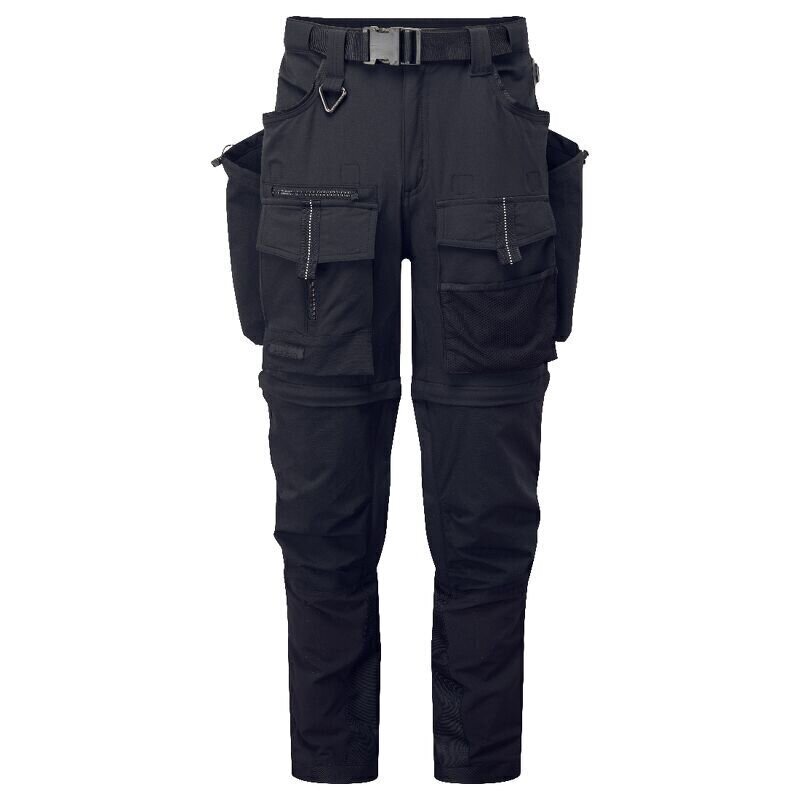 Ultimate Modular 3-in-1 Trousers The Ultimate Modular 3-in-1 Trouser design for your every need. The 3-in-1 design converts a work trouser to a work short or a EN20471 Class 1 work trouser. You have every thing you need. Pockets with magnetic flaps so they don't get in the way, Knee pads pockets, Large built in side pockets for large tools, spray cans or just fold up the legs when in shorts mode and keep them safe. Built in waistband, Front of leg cargo pocket for easier use when working, Mesh mobile phone pocket. Plus the unique clip on pocket system with the use of three pockets that can clip on the front or the back of the trouser.