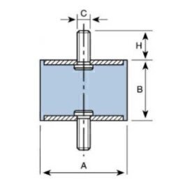 The AMC bobbins are devices for making elastic anchorings or fixings. They can be used in a wide variety of applications, particularly for elastic suspensions and anti vibration isolation of machines and different mechanical organs. Type A bobbins are made of a block of rubber with two parallel metal parts at the end which enable it to be fixed with nuts. The rubber block may be cylindrical in cases requiring greater load capacity or as a diabolo when greater elasticity is required in all directions.