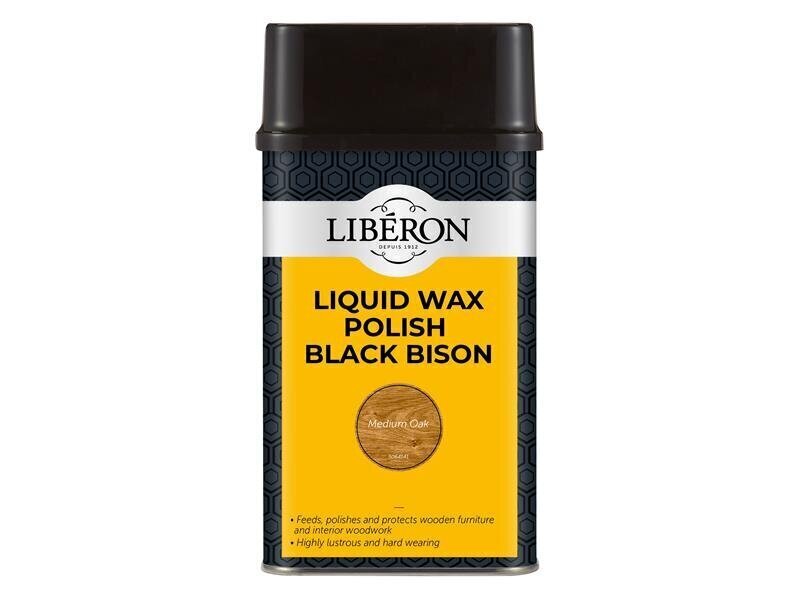 Liberon Liquid Wax Polish Black Bison nourishes and protects all types of wood. It feeds, polishes and helps to prevent wood drying out, and has traditionally been used on antiques. Well-known for its quality and pleasant, distinctive aroma, it provides a highly lustrous and hardwearing finish, as well as helping to cover marks and scratches. It will enhance the natural beauty of new wood.