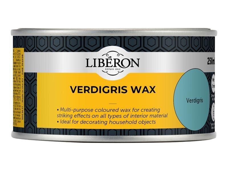 Liberon Verdigris Wax is a multi-purpose coloured wax for creating striking effects on all types of interior material such as wood, metal, stone, plastic and plaster. Recommended as a special effects wax, it gives green hues of oxidised copper and brass and can be worked into moulding, bronzes, papier-mache, alabaster and carvings. Ideal for decorating household objects, it buffs to a soft sheen, and can also be applied as a wax finish to bare or coloured wood.