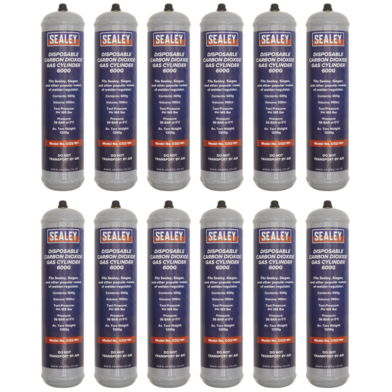 Sealey CO2/101/12 Gas Cylinder Disposable Carbon Dioxide 600g - Box of 12