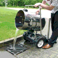 Trolley with swivel drum and two rear locking wheels for easy emptying plus front castors for added manoeuvrability.