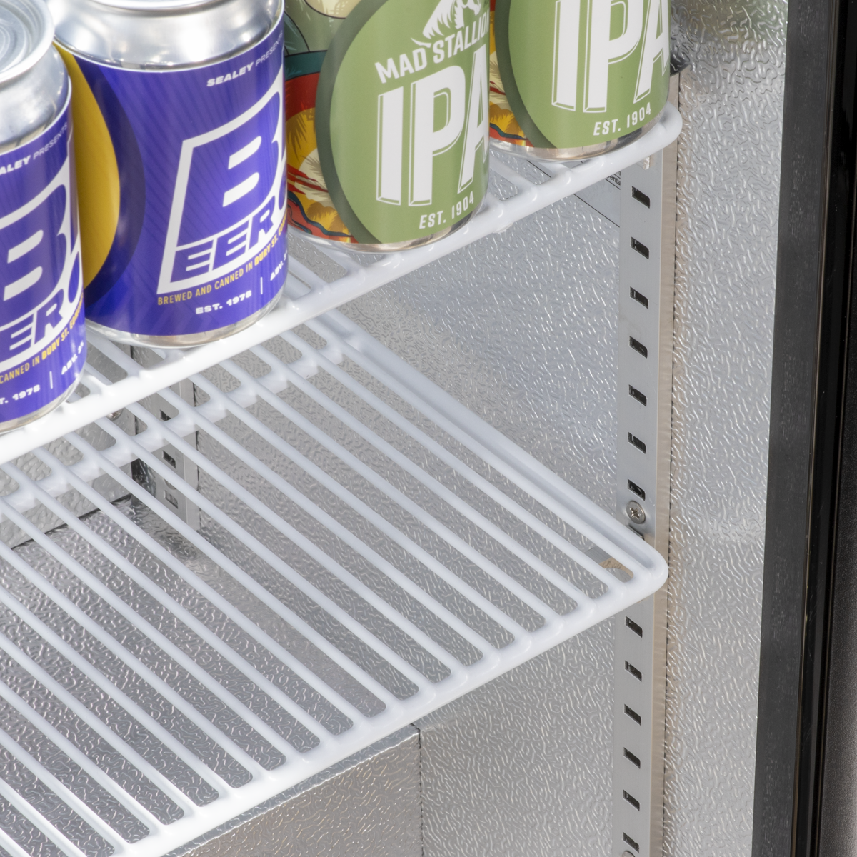 CONVENIENT ACCESS Self closing, hinged door design allows for easy and quick access to your drinks, also available with sliding doors with Model No. DH273.