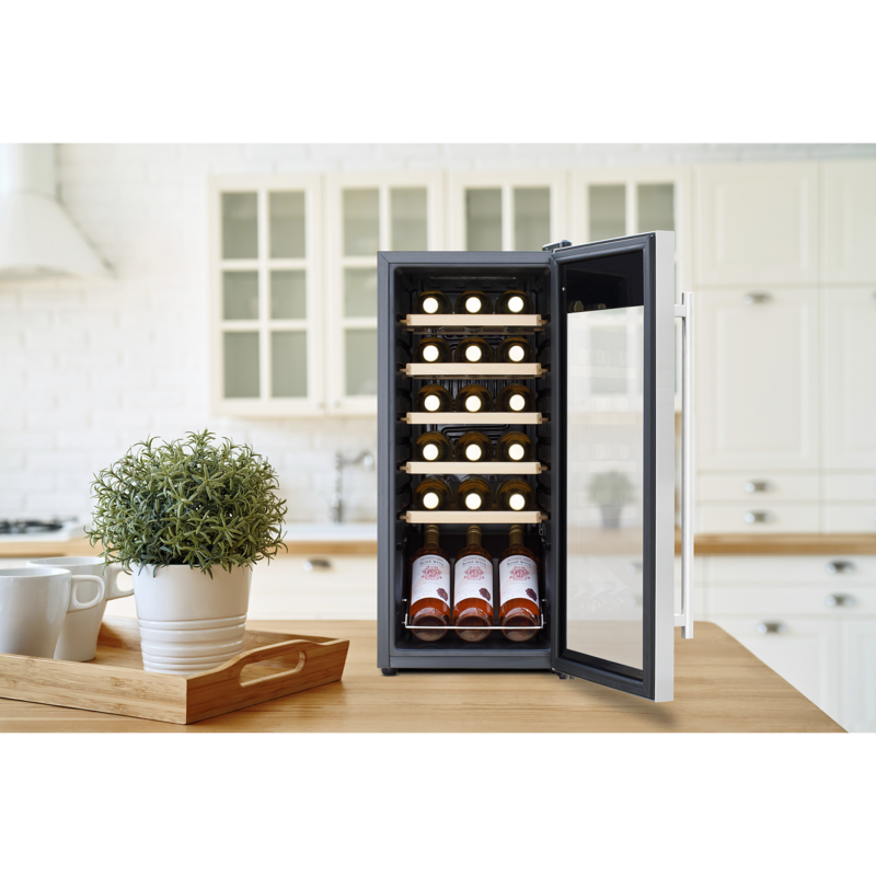 SLEEK STYLISH DESIGN - Attractive tempered mirror glass door helps to reflect UV light and protect your wine while letting you see the contents at a glance.LOW TEMPERATURE - Range between 5-18C, controlled by touchscreen controls. Compressor cooling technology with an automatic defrost feature to make this unit as easy as possible to use.