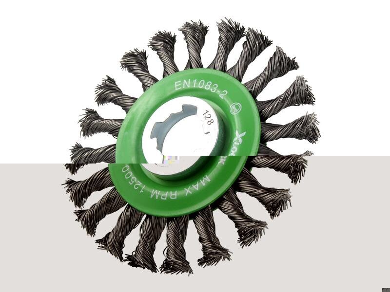 Faithfull X-LOCK Conical Wire Brush is for heavy-duty applications. Twist knot brushes are suitable for the removal of slag, rust, scale or even dried cement from welds, edges and grooves. For use on stainless steel surfaces, aluminium and non-ferrous metal surfaces. Using standard wire brushes on stainless steel can contaminate and cause the material to rust.