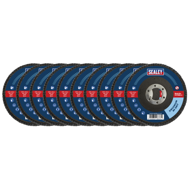 Sealey FD1158010 80Grit Flap Discs Zirconium 115mm 22mm Bore (Pack of 10)