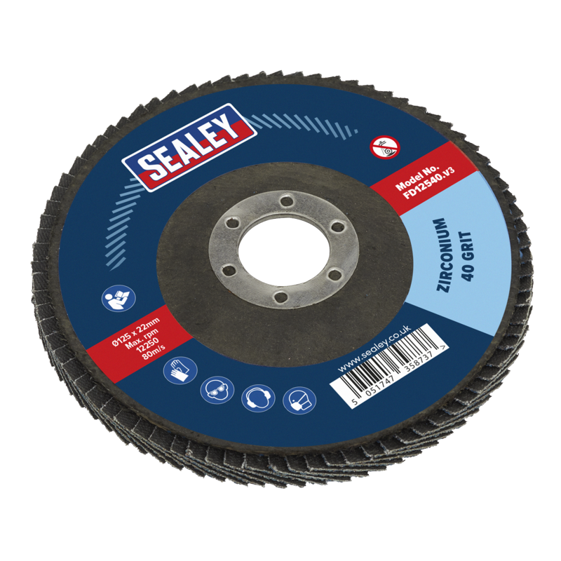 Sealey FD12540 Flap Disc Zirconium 125mm x 22mm Bore 40 Grit (Pack of 1)